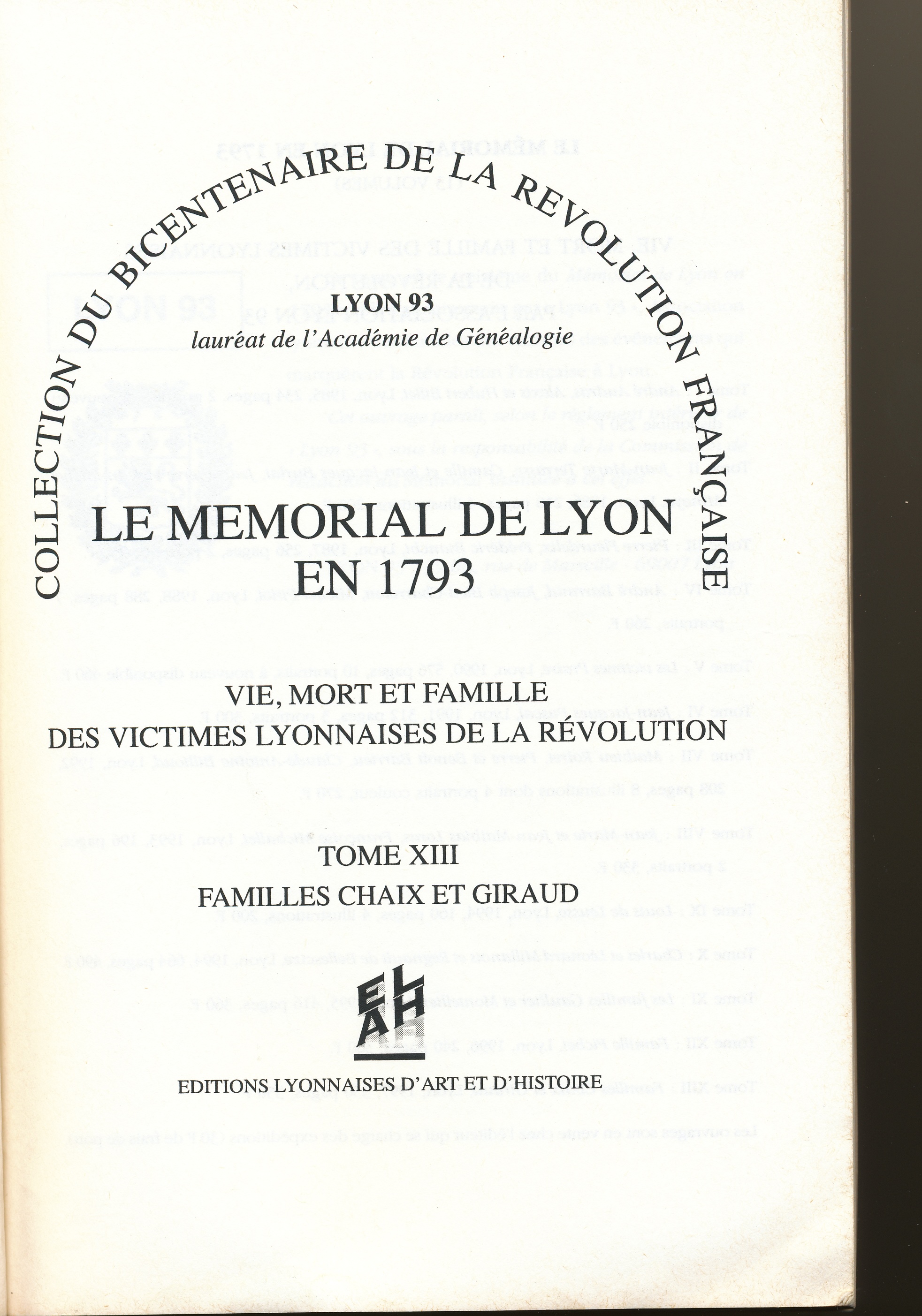 Le Mémorial de Lyon : une série de livres édités à Lyon, recensant et présentant les familles touchées dans cette ville par les troubles liés à la Révolution Française.
